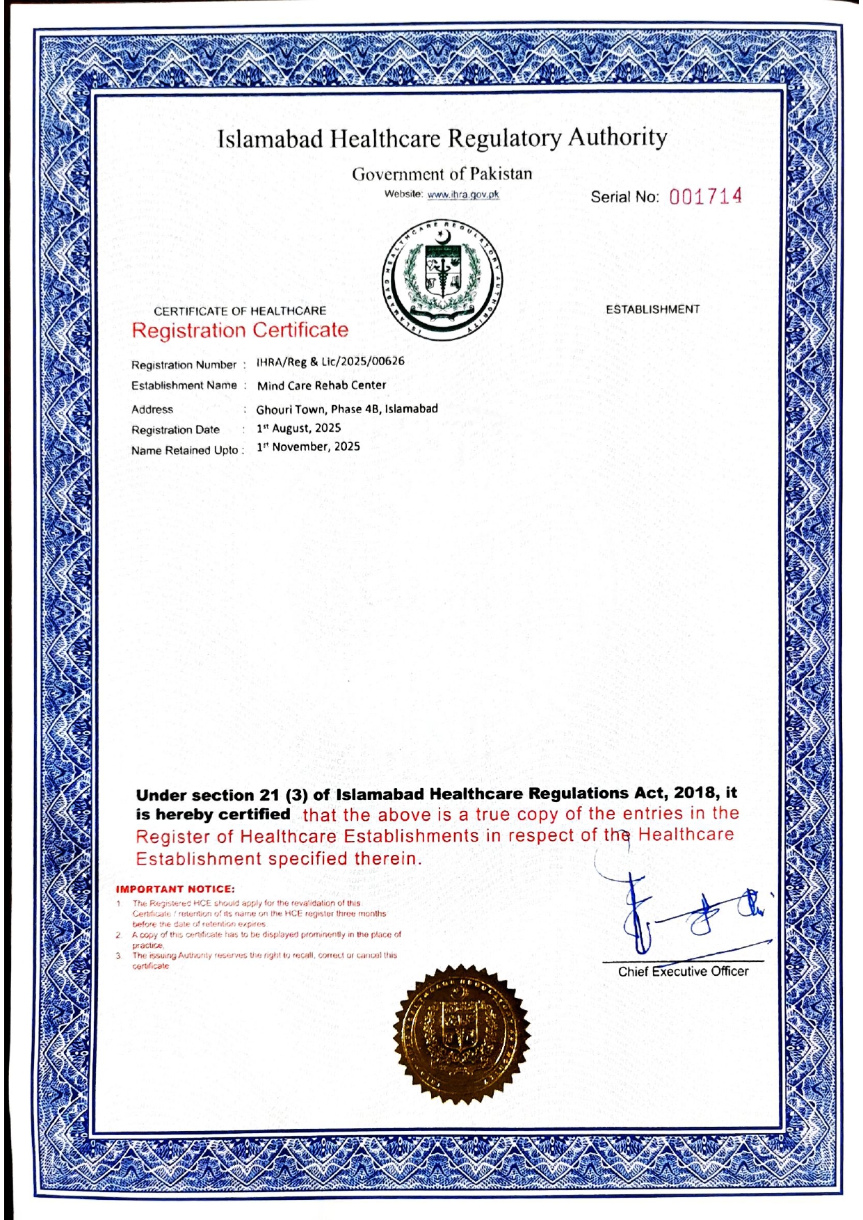 Founder & Owner of MindCare Rehab Center.